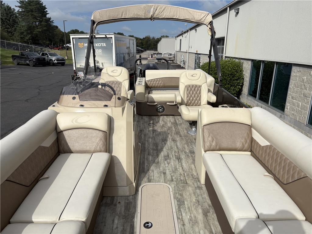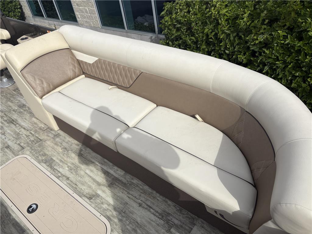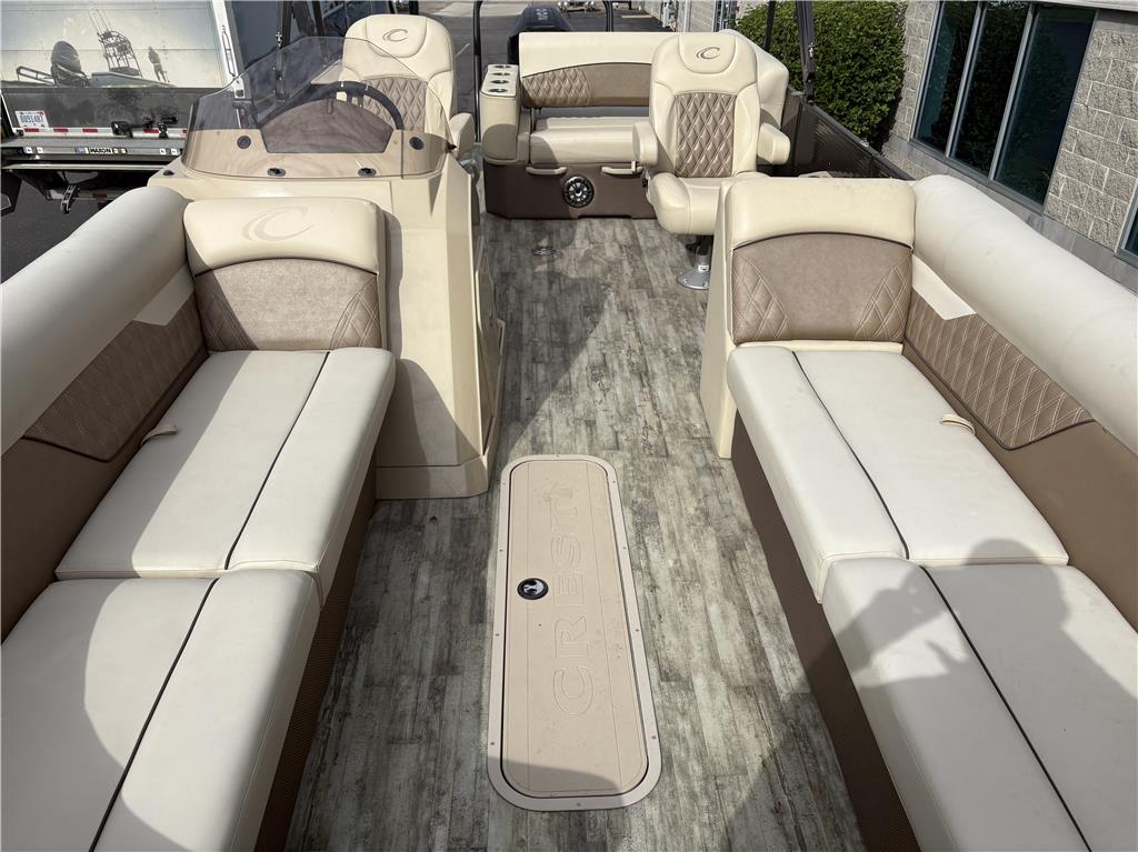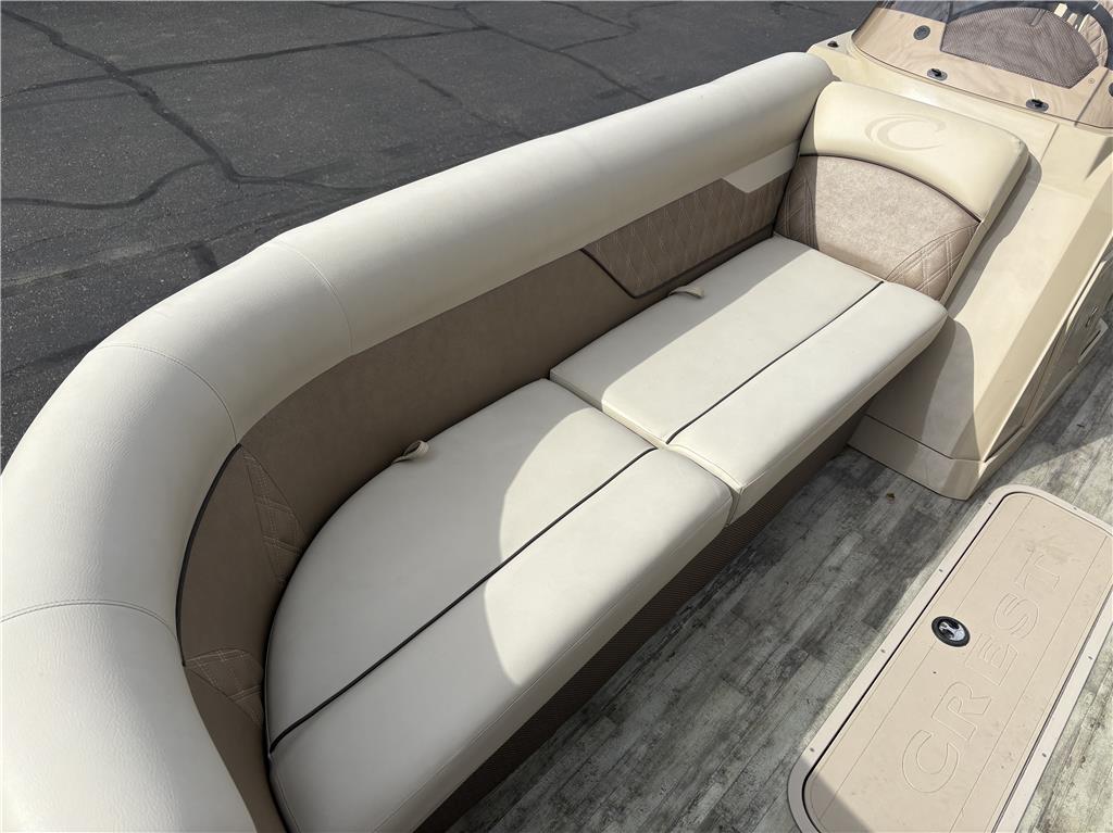 The 2021 Crest Classic Platinum 240 SLSC combines premium styling with versatile performance. With its sleek design, spacious layout, and rear swing-back lounge seating, this pontoon delivers both comfort and functionality. Perfect for cruising or entertaining, it offers luxury features and solid Crest craftsmanship for unforgettable days on the water.
