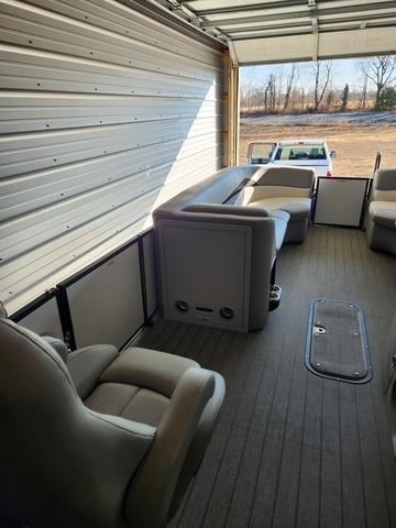 Contact Matt at TwoSevenZero-TwoFourThree-FourEightFourFive Boat is located in Gilbertsville, Kentucky. 2021 Manitou 25' Encore 25 SR SHP 575 Su 350 total length of 26' 4" with Premium trailer. Kentucky Lake Area. Boat is in like new condition interior and exterior. Approximately 90 hours on the Suzuki 350 equipped with dual propellers and with full service schedule completed to manufacturer specifications. Garmin GPS Mapping systems set in dash screen. Power assist steering system. Premium stereo system with sub under the console and Bluetooth. Blue LED Lights interior and exterior package. Stainless steel package on dock guards, corner castings, and gas cap. Center in tub storage. Battery Charging System with dual batteries. Folding entertainment table with additional table set up for back area seating that stores. Two anchors, All ropes - matching black. Six protective side bumpers - matching black. Six floating devices, eight life vests, fire extinguisher, and additional safety gear. boatsforsalebyowners.net/112202