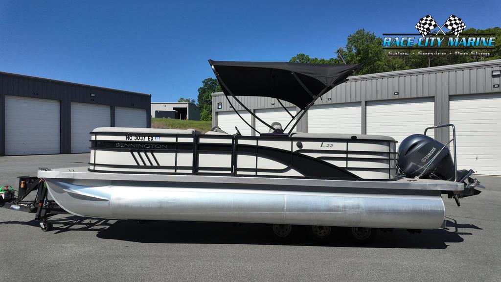 2022 Bennington 22 LSRThe L Model is available in a variety of different floor plans and configurations to suit your needs.One of our most popular floor plans, the Quad Bench configuration features benches in the front and the rear. This layout maximizes storage, seating capacity and lounge space. Many floor plans feature a sleek Fastback stern with speakers to extend your entertainment space.Features may include:INTERIOR2 Stainless Steel Rimmed Portable Cupholders with side mesh pocket24 Gallon Fuel Tank, 21.4 Gallon Usable Capacity(NEW) Radius Bow Furniture(NEW) Radius Stern FurnitureTransom Fuel Tank4 Chaise Lounges(NEW) Two-Tone Vinyl FurnitureL Series Furniture and ConsoleHorizontal Diamond Pressed UpholsterySimtex Vinyl Upholstery2 USB Charge Station with Volt Meter; 1 USB with Quick Charge 3.0 & 1 USB-C PortBamboo Vinyl FlooringDuraframe Seat BasesFire ExtinguisherPure Comfort Reclining Captain's ChairBlue Ice LED Illuminated Kicker Speakers (4)Captain and Co-Captain Seating (2 Pure-Comfort Reclining Helm Chairs with Integrated Headrests)Powder Coated Seat HingesStowable Sculpted Rectangular Black TableStainless Steel Rimmed CupholdersStern Radius BenchesCONSOLE12 Volt ReceptacleConsole Courtesy LightCustom Sterling Gauge Package: Fuel, Tachometer & TrimCustom Wheel with Zebrawood Slate Accents and Etched Center CapHour MeterLocking Side Access DoorLow Profile WindscreenOne Piece Fiberglass ConsoleRocker Switches with Dash Mount BreakersSealed Deutsch ConnectorsZebrawood Slate Dash AccentsTilt SteeringAll in One Kicker Stereo System (KMC45)Port Gate Glide/Gate StopEXTERIOR25" Pontoons6" Stainless Steel CleatsAnodized Raised RailsDeep-Step Stern Boarding LadderDocking Lights in ABS Light HousingsFull Length Extruded Anodized SkirtingQuick Release 10' Bimini Top with Surlast Embroidered Boot, 1.25" Frame & Trailering StrutsStainless Steel Cleats and Corner CastingsStainless Steel Deck Bolts (Fanged Elevator Bolts secured with Stainless Steel Nylock Nut.)Stern DeckStreamline Rail SystemSurlast Mooring CoverUnderdeck Spray DeflectorsFlush Bow Deck18 IN Stern DeckMooring Cover Quick ClipsFull Height PanelsExtruded Splash GuardsRounded Solid Keels.250" Thick Bow & Stern Cross Channels