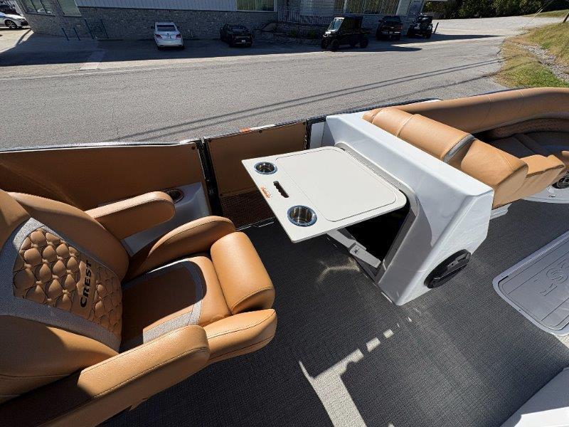 2022 Crest Savannah SLSC Standard Features .08 Thick Aluminum Pontoon Tubes .100 Thick Aluminum M Brackets .25 Thick Extruded Aluminum 4- Sided Box Beam Channel Cross members with Variable 15" on Center Spacing Boarding Ladder- 4-Step- Stainless Steel, Telescoping Bow and Stern Fiberglass with Storage Compartments CP3 Performance Round Tubes Ski Tow Bar Dual Battery Switch Battery Charger Fully Sealed Structural Bulkheads with 4 Chambers Gate Stops Nose Cone Polished Aluminum Stern Corner Casting with Stainless Steel Cleats Ribbed Aluminum Under Deck Skirting SeaCure Deck Construction Thru Bolted and Tech-Screwed SeaCure Luxury Deck Construction Stainless Steel Rub Rail Insert High-Back Reclining, Swiveling, and Sliding Helm Chair with Flip-Up Bolster Aluminum Billet Dash and Switch Panel Captain's Cooled Cup Holder Fiberglass Helm with Windscreen/Windshield Gauge Panel- Fuel, Tachometer, Trim and Volt GPS/Sonar/Fish Finder- GARMIN Steering- Sea Star EPS Tilt Steering Wheel Digital Switching Changing Room with Privacy Curtain and Frame Cooler Bag, Soft-Sided Crest Logo'd Fiberglass Sear Base Construction Floor Covering- Luxury Poly Vinyl or SeaGrass Ultra Soft Luxury Leather or Sport Upholstery Table USCG Compliant Stainless Steel Hand Holds RGB Cupholders Power Electric Bimini Top Mooring Cover