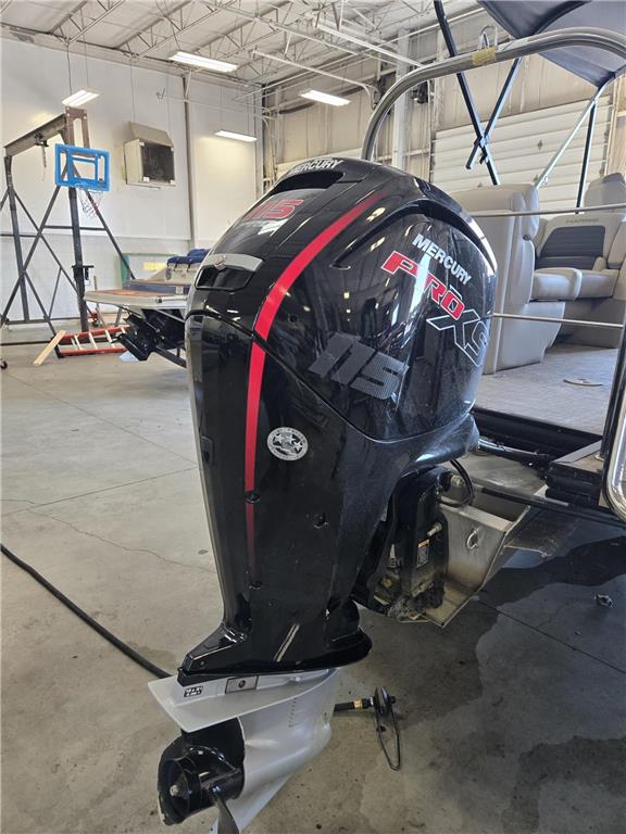 Clean and inspected with ultra low hours!Center Walk Through with Dual Helm chairsThis pontoon comes powered by a Mercury 115hp Pro XS Four StrokeUpgrades from factory include: Interior lighting package, Simrad GO9, and Electric power bimini topFor additional information call us today at 800-875-2620 and select the location nearest you Max HP: Perf. Pkg. Plus: 300 HP; PIII Pkg.: 300 HP; 2 Tubes: 200 HP Overall Length: 26 ft. 2 in. Deck Length: 23 ft. Deck Width: 8 ft. 6 in. Weight: 3-25 tubes: 3266 lb.; 3-27 tube: 3400 lb.; 2-25 tube: 2728 lb.; 2-27 tube: 3460 lb. Capacity: 3-25 Tube: 12-13 persons; 3-27 Tube: 14 persons; 2-25 Tube: 10-12 persons; 2-27 Tube:11 persons Number of Tubes: 2-3 Fuel Capacity: Perf. Pkg. Plus: 37 gal.; P3.5 Pkg.: 63 gal.; PIII Pkg.: 63 gal. Max Carry Capacity: 3-25 Tube: 2430 lb.; 3-27 Tube: 2747 lb.; 2-25 Tube: 2219 lb.; 2-27 Tube: 2293 lb.
