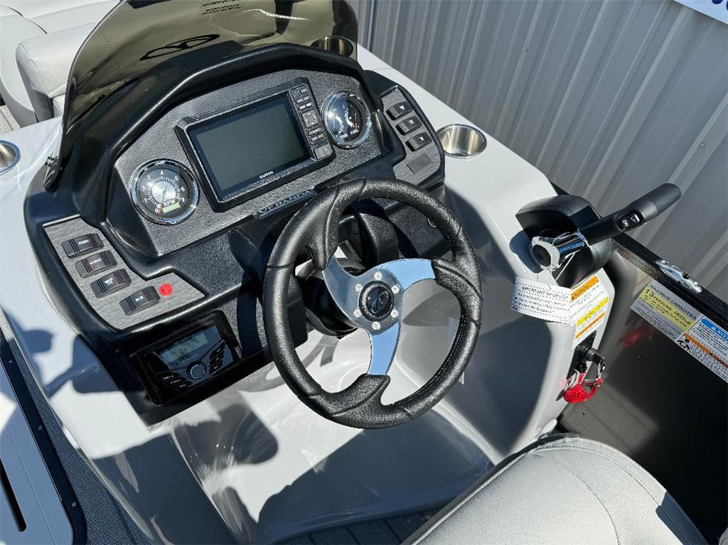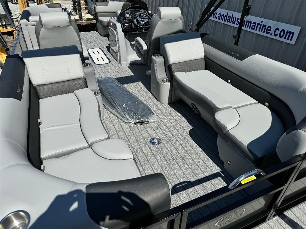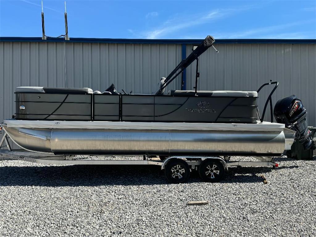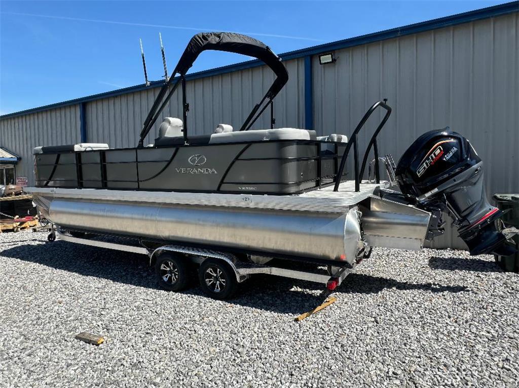 The Veranda Luxury Pontoons Relax Series RC (Rear Chaise) features wrap-around luxury and comfort. Four individual chaise lounges combined with traditional bench seating maximize comfort and capacity, accommodating your entire party in style. Industry-leading value, time-tested style, and maximum Veranda seating – all built upon the Veranda Difference. Relax in confidence, relax in comfort, and relax in the knowledge that you have made an intelligent, informed choice. This Particular Veranda Relax VR22RC features Vernada's Deluxe package, Charcoal Metallic fencing, Black Powder Coated rails, black bimini top and cover, 27" pontoons, Woven Teak Slate Grey flooring, and carbon/dove grey upholstery Powered with a Yamaha VF250LB outboard with stainless steel prop and sits on a tandem axle aluminum Backtrack trailer. Financing is available WAC with terms as long as 20 years!
