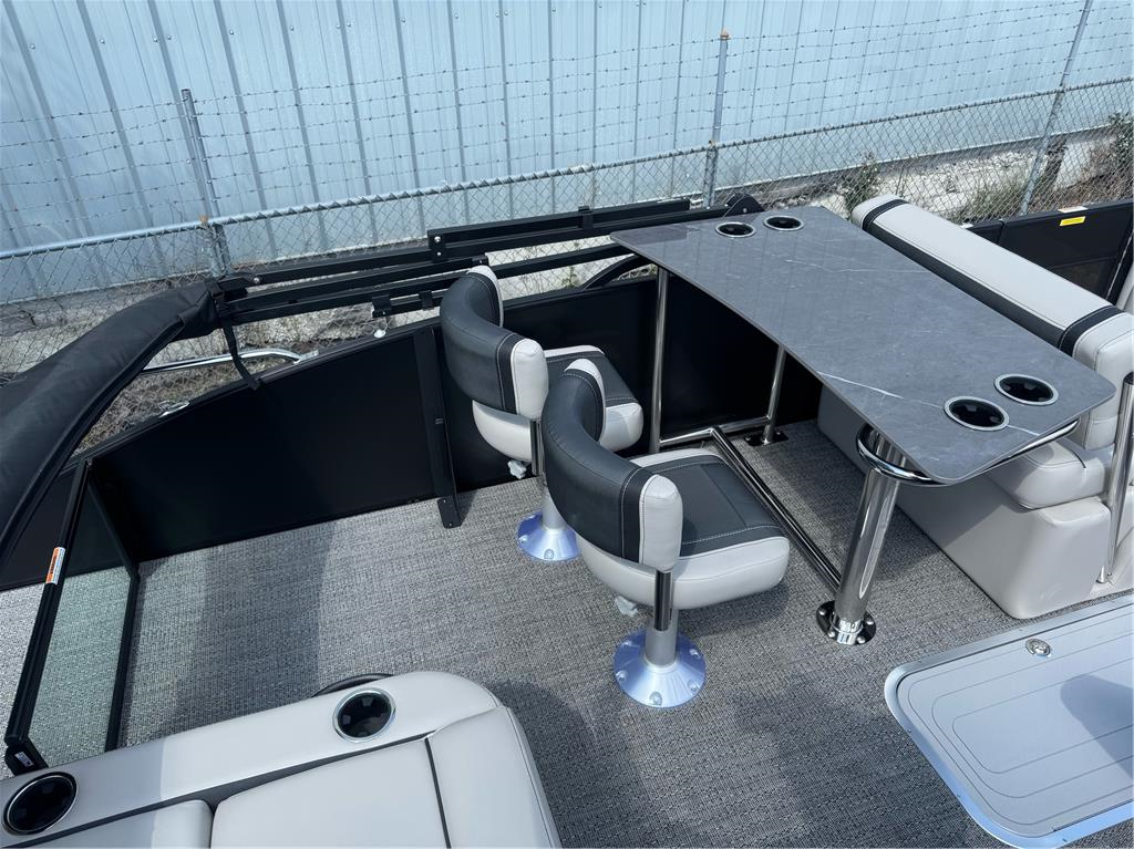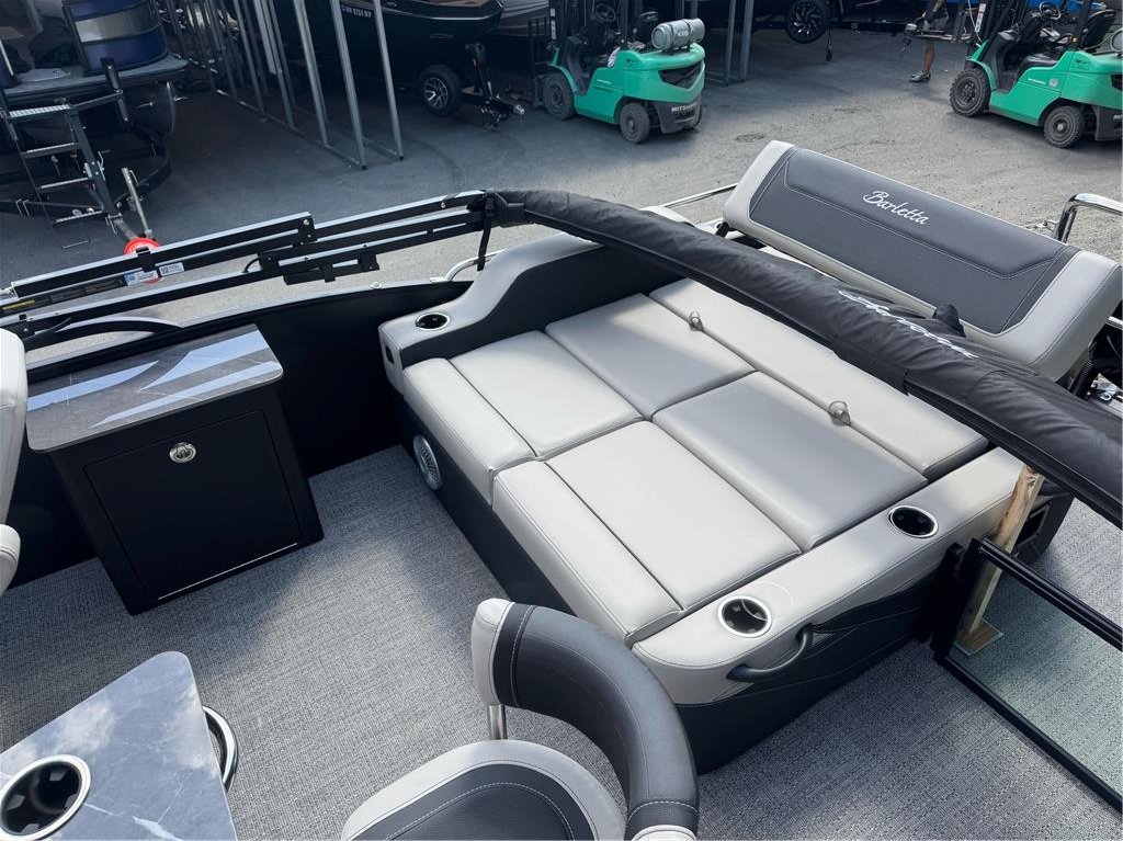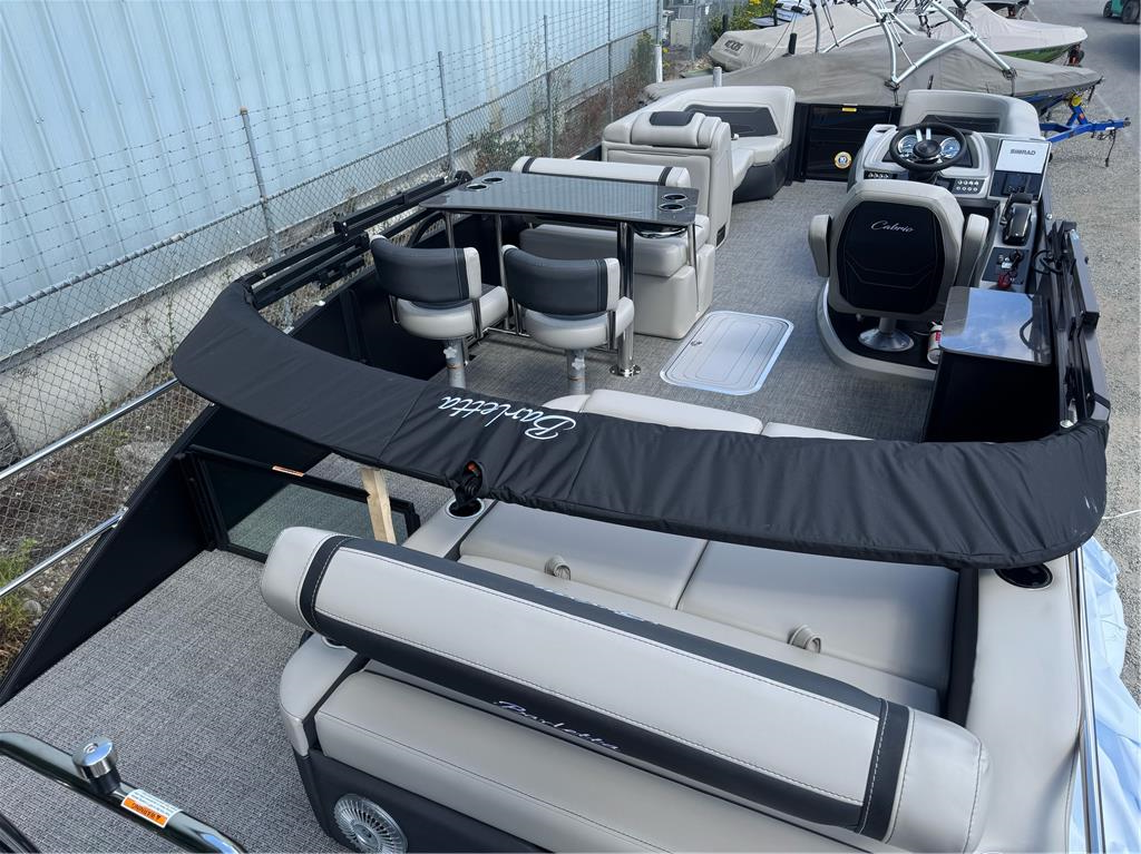 Barletta Cabrio 24 Ultra Entertainer ready to party! The highlight of the Ultra-Entertainer floorplan is the versatile high-top table accompanied by two upholstered swivel stools with additional multi-function bench seating perfect for hosting family and friends of all ages. Moving to the stern of the boat you will find the one-of-a-kind Ultra-Lounge featuring 5 different seating positions. To round-off this floorplan, you will find the standard chaise-lounge seating in the bow designed for comforting lounging and extra seating. Tricked out with all of the above, 200 HP Mercury motor, power bimini, tandem axle trailer, swing tongue, spare tire, mooring cover, etc. Full photo gallery available at www.nwinboards.com