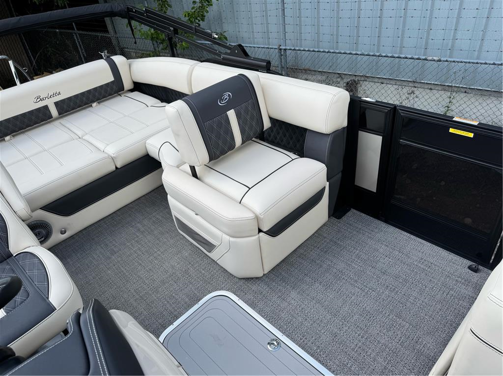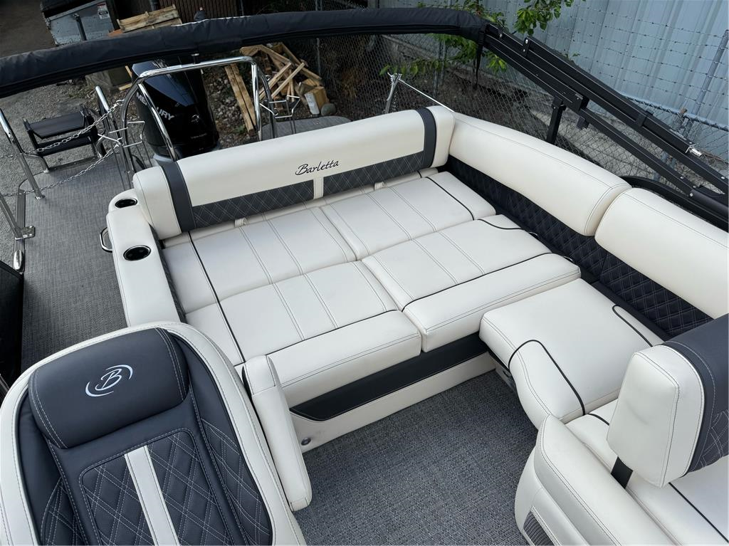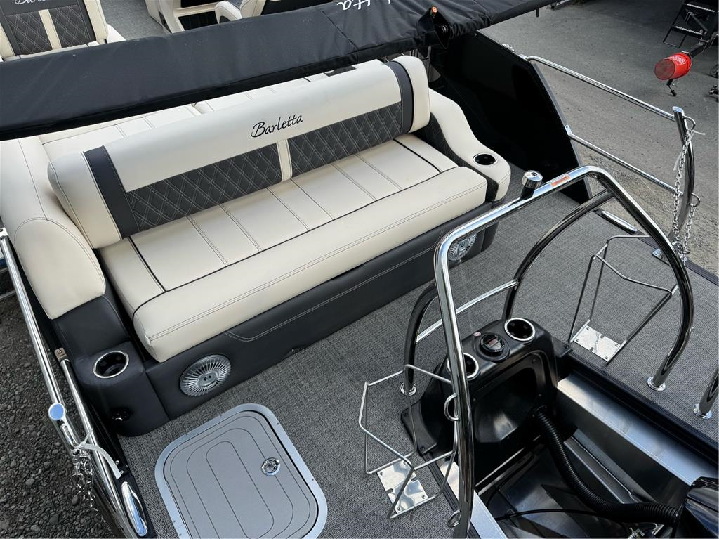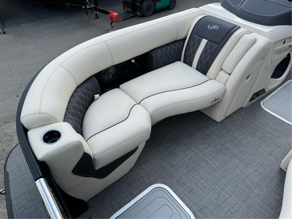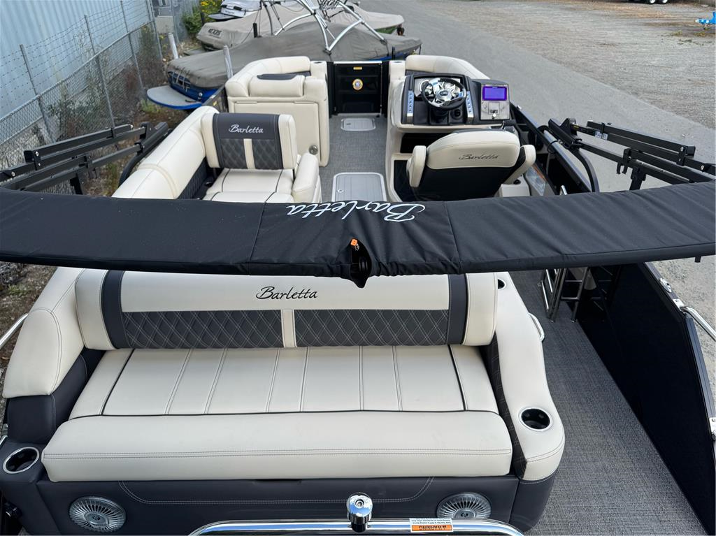 23+ feet of luxury in the Lusso Ultra Lounger Designed with you, and your on-water experience, in mind, the Barletta Lusso models offer something for everyone. A classic and stylish rail-set, ultra-soft and ultra-comfortable furniture, a sleek helm loaded with technology and leg-room, pet-friendly amenities...the list goes on and on. Take a look and see why the Barletta L-Class pontoon boat just might be the perfect choice for you and your family. This boat is loaded with 300 HP V8 Mercury motor, massive power bimini, transom stanchions, dual captain chairs, massive storage, anchor locker, tandem axle trailer, swing tongue, spare tire, mooring cover, etc. Cruise the PNW in the lap of luxury this summer! Full photo gallery available @ www.nwinboards.com