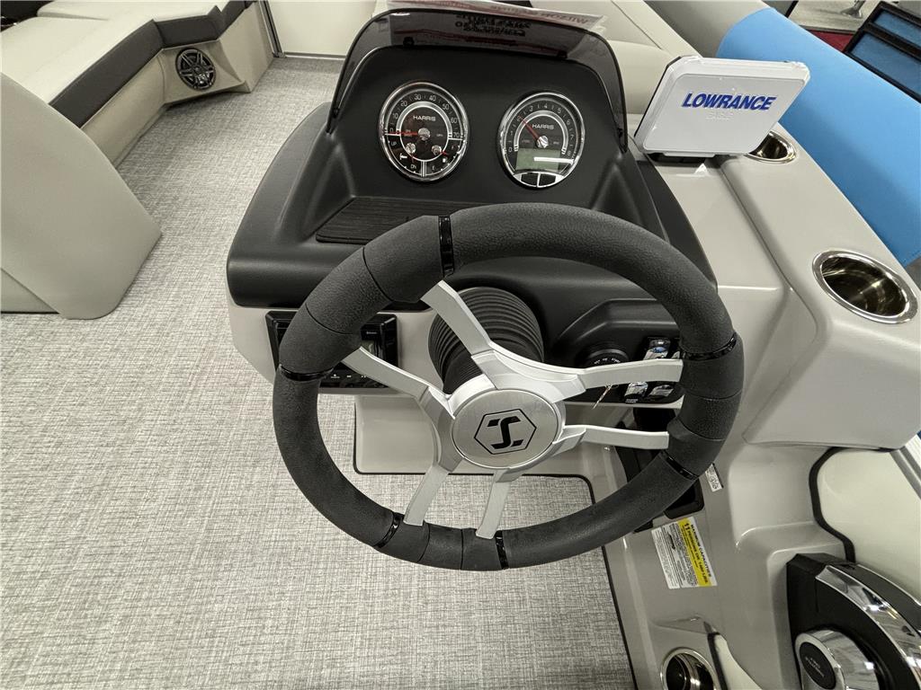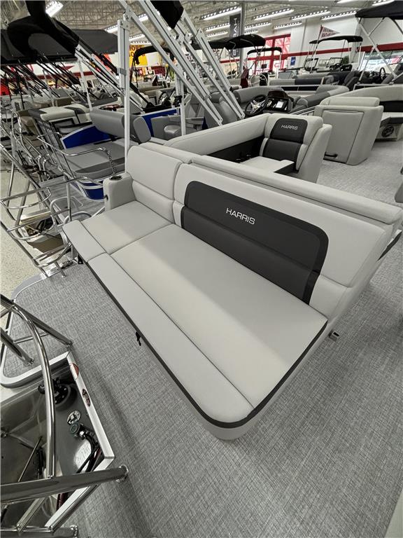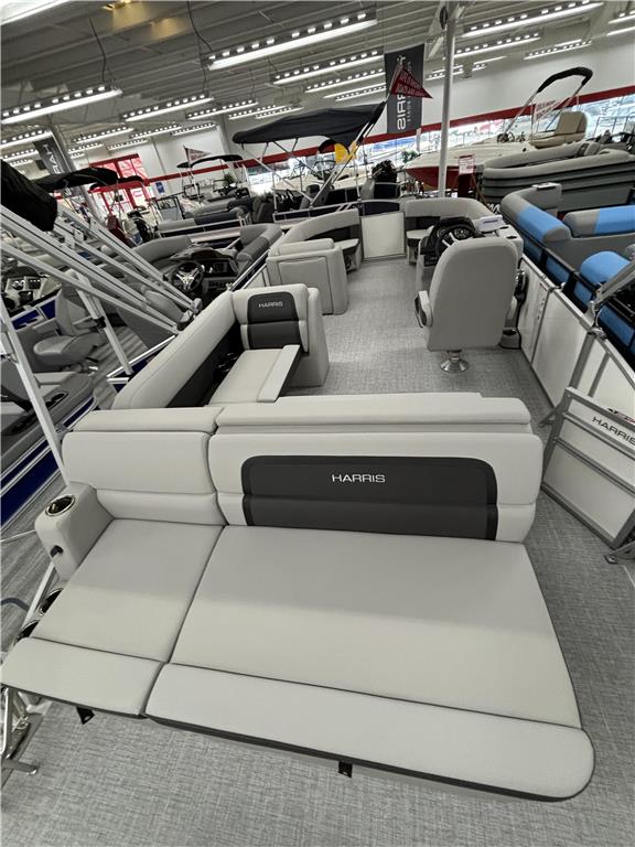 2025 Harris 230 Cruiser with CS floorplan and powered by a Mercury 50ELPT 4S EFI!Factory Installed Options:Exterior- ceramic white with vivid blue metallic accentsInterior- tungsten225 chassisXtreme/tilt steering10' black bimini canvas4 step telescoping stainless steel ladderStainless steel ski tow barUltra lux high back helm seatStone gray woven vinyl flooringEagle fish finderClarion stereoStainless steel cupholdersSafety railWoodgrain luxury sport table Deck Length: 303 in. (7700 mm) Deck Width: 102 in. (2.59 m) Weight: 2897 lb. (1314.1 kg.) Capacity: 2003 lb. (908.6 kg.) Number of Tubes: 2 Fuel Capacity: 29 gal. (109.8 L)