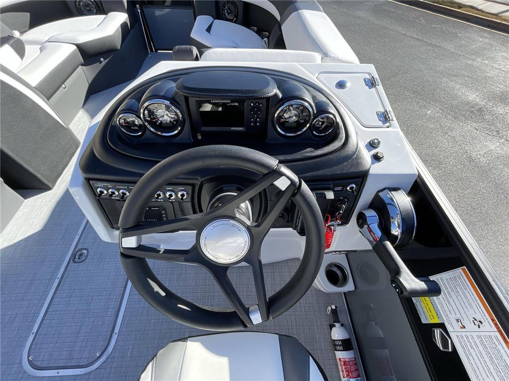 The Southbay 200 series is the perfect balance of comfort, affordability and performance. Revel in the extraordinary with our S224RS 2.75 Performance Package which includes 25" Tubes Center Sport Tube, an Aluminum Underdeck, and Large Lifting Strakes on the inside of the outer tubes. A sturdy 27 Gallon Fuel Tank, SeaStar Hydraulic Steering, and Tilt Steering ensure a smooth ride and high-performance sailing ease. With the additional arch, it is sure to turn heads on the water! Enjoy comfort in style with our Hex Titanium (White/Grey) furniture base and Black Onyx furniture accent. We also provide a standard 20" Shaft Transom. Take advantage of the In-Floor Storage with dimensions 24"W 79"L. Other features include a standard mooring cover in Coal, canvas colors in Black and additional safety features from Mercury.