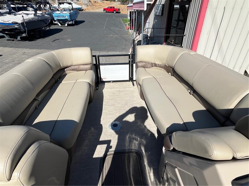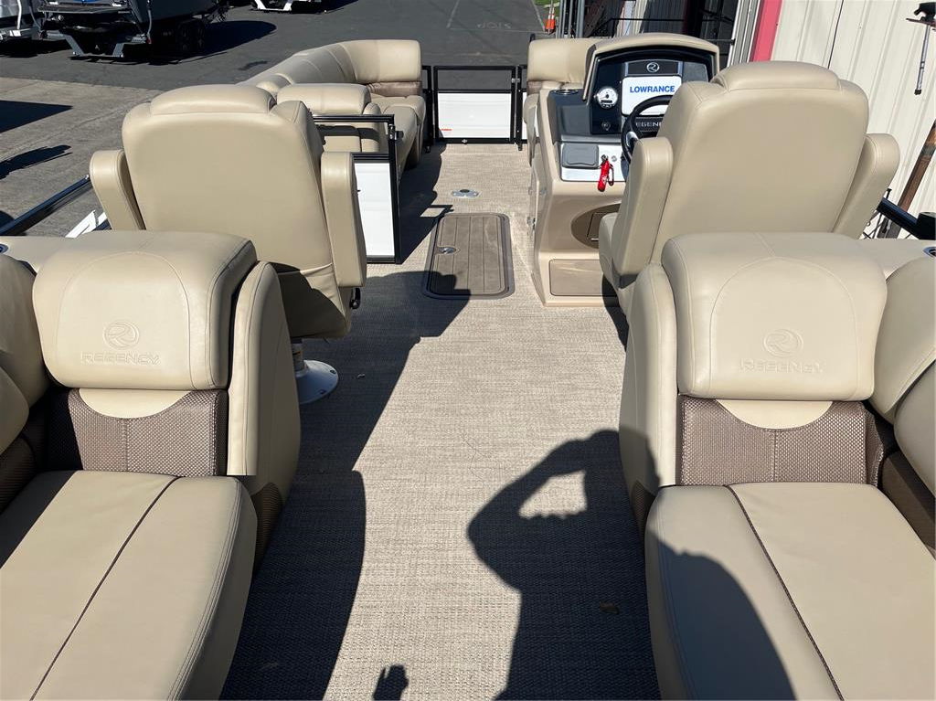 Location: 7450 Folsom-Auburn Rd, Folsom, Ca 95630. Or; Visit our website at www.MelloMarine.com 2023 Regency DL Hours 27 *Mercury 200HP V6 *Cover *Electric Bimini *Space Tire *Front Trailers Ladder *Center Toon Storage *Kicker Interior Speakers (x4) *Kicker Stereo *Lowrance Hook Reveal 755 Fish Finder/gps/down scan *Throttle w/Start/stop/throttle only & Trim Profiling *Onboard Battery Charger Outlet *Battery (x2) *Perko Switch *ACR Battery Combining *Troll Speed Cruise Combining (rpm, mph) *Rpm Gauge w/LCD Screen (trim, fuel, temp, volt, hours) *Mph Gauge w/LCD Screen (mph, fuel, temp) *Anchor Pole Light *Rear Ski Tow Pole *Swivel Seat (x2) *Anchor *Glove Box *Head Rest Storage (x4) *Storage Under all Seats *Rear Swim Ladder *Cup Holdrs *Trash *Table *Interior Courtesy Lights *Out Board Trailer Stilt $79,995.00 Mike & Sally Mello 916 635 2628 South Bay Pontoon, Bennington, Crest, Qwest, Harris Sun Tracker, Barletta, Lowes