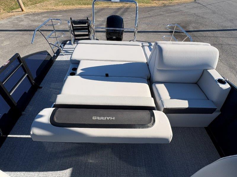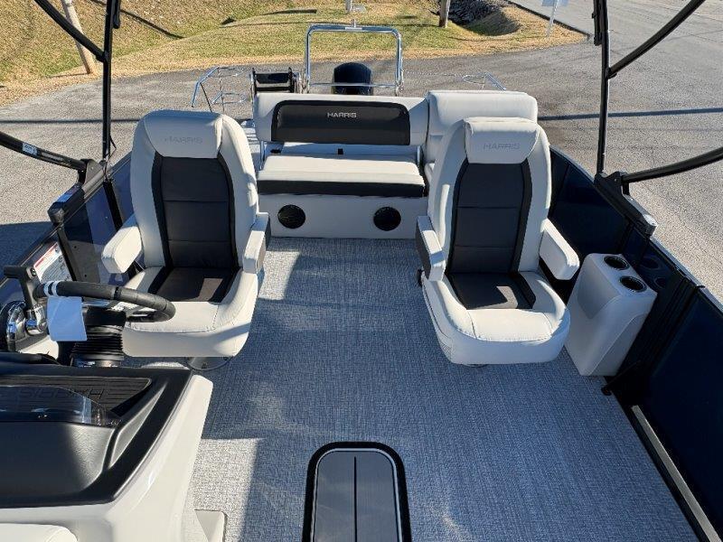 2026 Harris Cruiser 230 SLDH Key Standard Features: Construction • 24" Inch Average On Center Placed • 25" Diameter Tubes • Aluminum Extruded Crossmembers • Deck, Radius Bow • Stainless Steel Flip-up Cleats • 3/4" 7-Ply Pressure Treated • Full-Length Pontoon Brackets • Safety Gates • Extended Rear Platform (11.675") • Anodized Rubrail With Insert • Trailer Tow Eye • Quick Release Trailering Struts • Underdeck Wiring Protection System Performance • Standard 225 Chassis • Full Length Keel (3/8 Inch Thick) Floorplan • CW Floorplan - Center Walkthru Interior • Port Bow Chaise End Storage • Dune Interior Color • Full Desert Beige Seagrass Flooring • USB/USB-C Charging Ports • Mooring Cover Factory Installed Options: • 150l Efi Fourstroke • Black Edition: Powder Coat Fence* • Furniture, Tungsten* • Primary Fence Color, Midnight Blue Metallic • Royal Heritage Badge • Sldh Flrpln (single Rfl W/std Dual Helm)* • **Standard Hydraulic Steering W/Tilt** • 2 Gauge Cable - 15' • 325 Chassis,3tubes 25"out/27"ctr W/strk&kl* • Bimini, Contour Power Top 10' Black Frame • Blk Contour Fence Brace With Dh Floorplans • Cap Tag: Three Tube 25"<195 • Charger, Wireless Mobile Phone Holder • Chassis 3-25" Tubes W/storage & Ski Tow Bar • Cover, In Floor Storage Lid Gray • Deckboard .sch 5058 • Discount, Nap - 150hp W/325 • Discount-hh • Fence, Sl/dh Floorplan, Black Powder Coat • Flooring,(f45)stone Gray Woven Vinyl,full • Hydraulic Hoses, Seastar Standard 22'