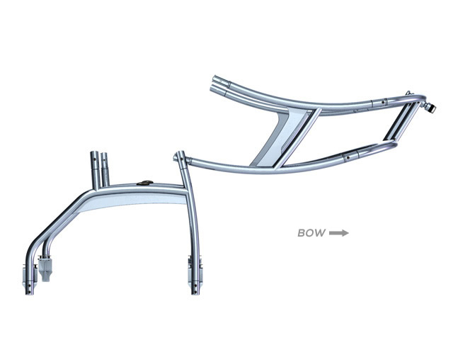 If space is limited when you store your pontoon boat, you will appreciate how easy it is to fold the F250 pontoon ski tower. Use a standard Allen wrench to remove a couple bolts and fold the pontoon wakeboard tower in half in just minutes.